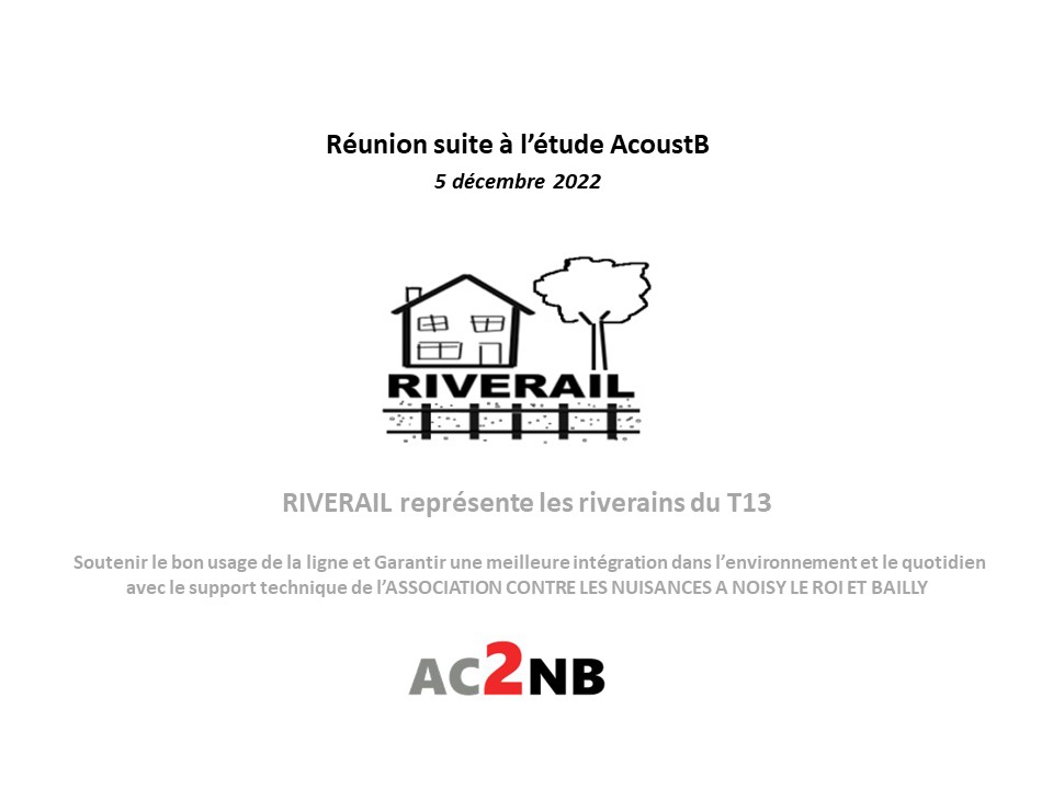 Le 5 décembre, nous étions conviés par IDFM pour échanger sur le rapport acoustique réalisé par AcoustB sur la ligne du T13 à Bailly et Noisy le roi.